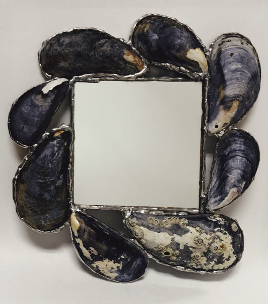 Pemaquid - Janet took a class in 1981 to make inexpensive Christmas presents for her family and never expected to make a living at doing what she loves. Janet loves living on the coast of Maine and wanted to bring that into her work. Her mirrors often use beach stones, sea glass, shells, driftwood, Maine slate and other objects "du jour". She specializes in getting a good "bead" around each piece whether it is glass, bevels, beach stones, or something else, that gives a finished look to the overall piece. All mirrors are felted on the back to protect the mirror and the customer's wall.